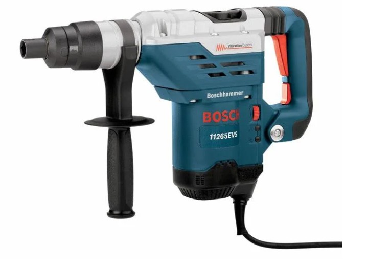 • Bosch 1-5/8-inch spline rotary hammer comes with side handle and carrying case