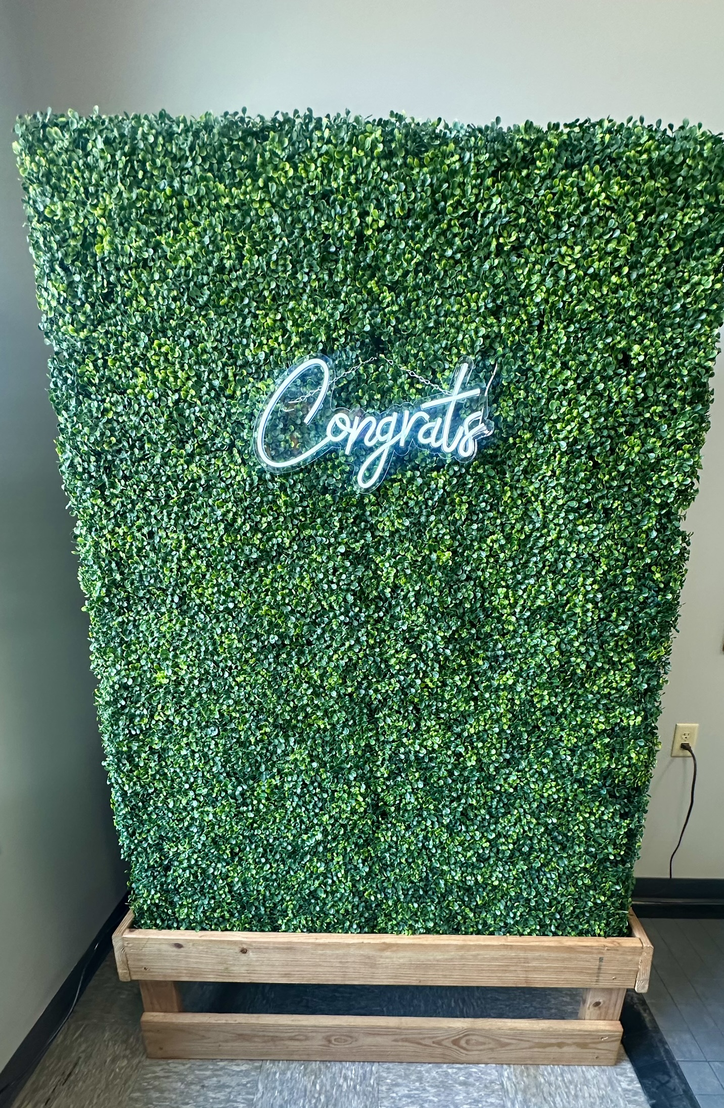 This is the perfect addition to your graduation party, bridal shower, baby shower or wedding! This wall stands approximately 80" Tall when on the stand and is 48" Wide x 14" Deep. The "Congrats" neon sign must be plugged in and is included in the rental.